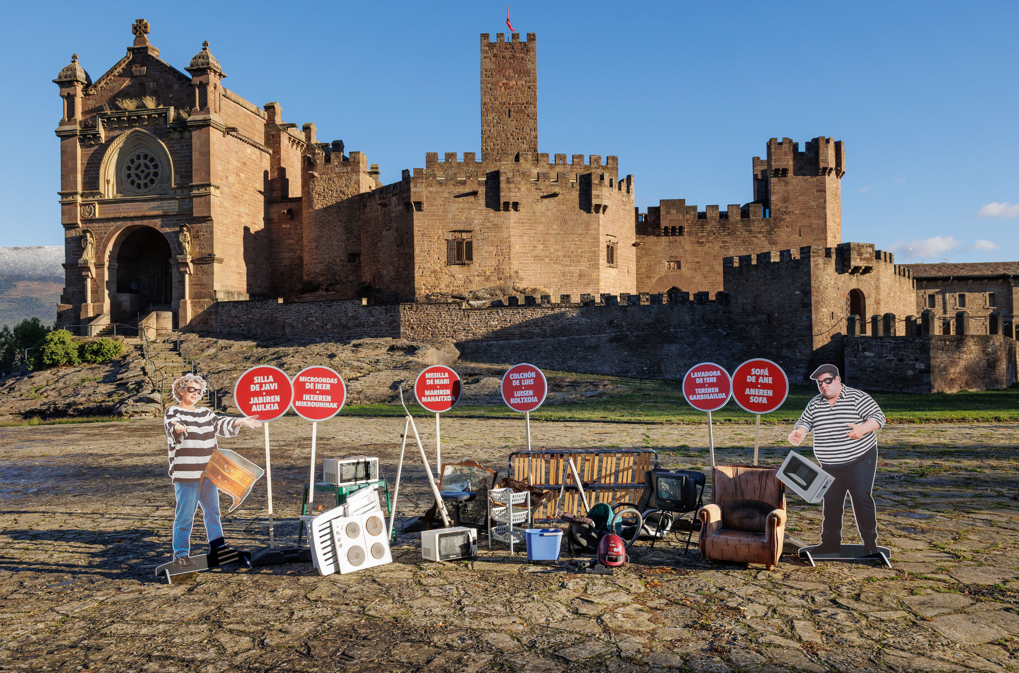 Además, se ponen nombres y caras ficticias a los objetos abandonados (“el colchón de Luis”, “la silla de Javi”, “la lavadora de Tere”, el sofá de Ane), personalizando el problema y mostrando la realidad incómoda del abandono como un acto irresponsable, incívico y sancionable.